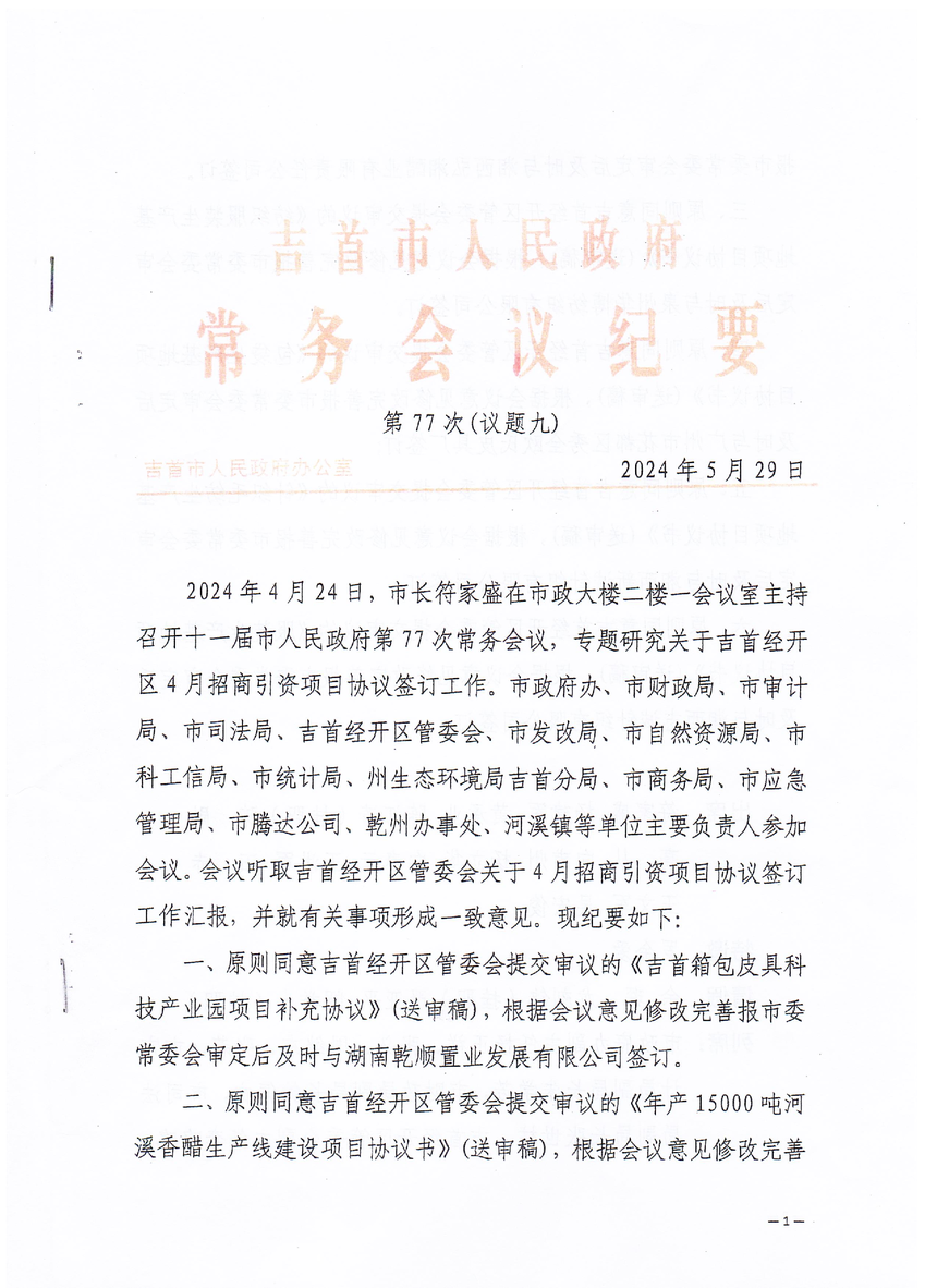 吉首市人民政府 常务会议纪要
